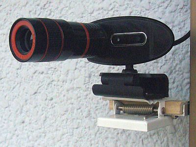 このUSBカメラは、筐体の前面が傾いた設計で、此処に“後付けレンズ”(望遠やワイド)を付加するには、大変具合が悪い。