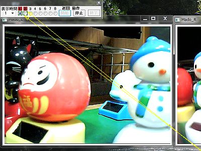 1台以上8台まで接続してあるカメラ群の内、指定した2台(茶褐色で指定)を連続的に「同時表示」させるルーチンを作った。(図4<クリック>)