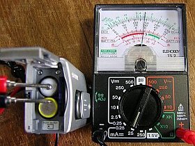 どうも、直列に電流計などを入れると(見られるのを嫌がってか?)ちゃんと電源が入らないのです。(一瞬入りますが、直ぐに切れます)
