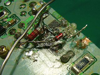 基板の上も汚れて来たので、もう、この電源回路の修復は諦めた