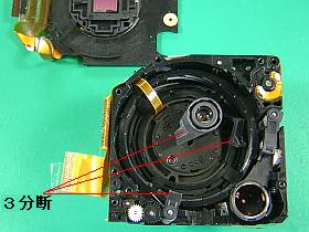 それらが挟まったのに、更に駆動系が「主レンズ」を強引に収納しようとして、電子回路のどれかが過負荷/