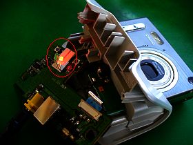 分解したままで、手持ちのカメラEX-Z3(専用バッテリ入り)とACアダプタを接続してみたら、そのまま充電を開始してしまいました。
