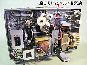 動かしてみると、ランプは活きていましたし、回転もスムーズ。しかし、フィルムの始めの方はかなりギクシャク。暫くして巻き取りの方がちゃんと巻け始めると、映像は安定します。