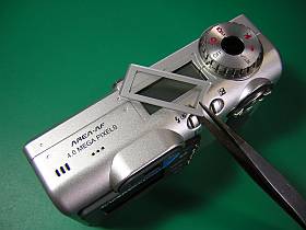 左写真は、“手掴み引出し方式”でセットして、マクロで撮影したFinePix4500のアップ写真。