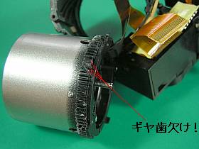 問題は、ギヤ欠けだったのですが、レンズ部が長く迫り出すこのタイプは、送り出し用ギヤに相当強い力が掛かるのと、それぞれのギヤはかなり精密でないといけないようなので、補修は大変難しい!