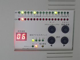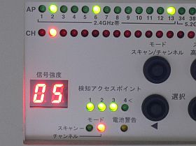 暫く、LEDのスキャンの様子を眺めていて、ご近所さんは、未だ、2.4GHz帯らしいことと、どうも“工場出荷設定”らしいチャネルをそのまま使っている状況が、分かりますね。