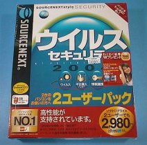それで、以前安物を買って失敗したのですが、やむなく、また廉価版ウィルス対策ソフトを買いました。SOURCENEXT社の「ウィルスセキュリティ2004」2ユーザーパック\3,024(税込み・・・あまり安くはないですねぇ)。