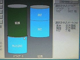 考えた末、アッサリと(?)"Lib60上でのFDISK法"は諦めて、「システム・コマンダ」で、元のように空き領域(今度は40MB程の)を作ってから、OSをインストールし直し。今は、問題無く動いています。