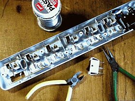 中は、値段の割には、チャチです。テスタで調べた結果、SWを逆に付け直せば、望み通りの個別SW付きマルチ・コンセントになる事が判明。