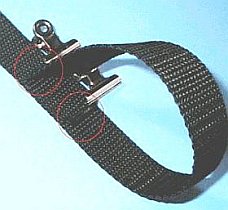 今の処、予備電池を肩から提げて持ち歩く予定はありませんので、どう考えてもこんなに長いのは邪魔です。そこで、ベルトを縮める事にしました。