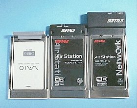 それで、短頭無線LANカード(SONY製PCWA-150S)の安いのを探していた処、\3,800/枚が見付かったので、纏め買いしてしまった。(でも、3枚位では焼け石に水なのだ。その店、既に倒産した模様)