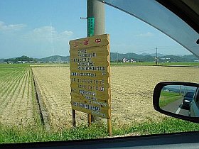 車で越前海岸からの帰り道、道路脇に洒落た看板があるのに気が付いた。本来は停車して撮ればいい(べきな)のだが、バックミラーを見ると生憎後続車が数台。咄嗟(とっさ)に、抜き撃ちで車内から撮ってみた。(撮れたのは、これ1枚だけ!)