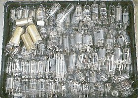 これだけあると、何かに使ってみたくなるのが悪い癖。これで(未だ構想中の)5球スーパを作ってみようかな?と夢想している。この球だけ小さくても、他の部品に大きいのがあるから全体では小さくならないのだが、球だけを並べていると小さいスーパ・ラジオが出来そうな錯覚に陥っている。(バカめ!>自分)