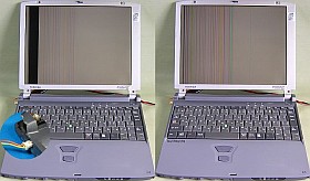 "ヒャー!酷い表示だ!"・・・が、キーを叩きまくっている内に表示パターンが変った。ふむ、液晶パネルが壊れているにしては妙だ。I/Oアダプタを買って、外部モニタで調べてみるかな?