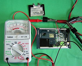 それもそのはず、可変電源を繋いで本体の液晶インジケータを見ながら調べたら、必要電圧は約4V(+0.5/-3V位のマージン)Li-ion/ポリマが3.6〜3.8V位との事だから、これか?しかし、こんな形の市販品は見た事が無いなぁ。
