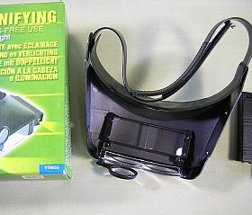 ICを探しに行ったデジットで、(新品の!廉価な)倍率容易可変型ヘッドルーペを見掛けたので、つい買ってしまった。(Velleman社の扱い商品−中国製\1,220税込)