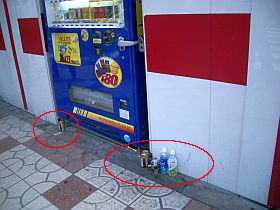業者も業者なら、買う方も買う方だ。もっと、町の美観を考えて、空き缶や、ボトルは、ちゃんと全部「取り出し口」へ戻しておく事を躊躇(ためら)うべきではない!空き缶・ボトルで、取り出し口を満杯にしよう!