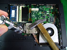 一瞬だけ生き返ったSOTEC WJ355ジャンクの内部を、一度綺麗に清掃出来ないかと、錆びで固着したビス回しに挑戦。