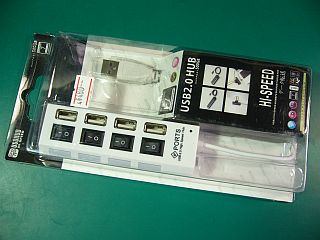 これは4ポートHUB2.0ですが、それぞれにLED+SW(スイッチ)が付いていて、それぞれ単独で接続や切り離しが出来るタイプです。(左写真<クリック>)