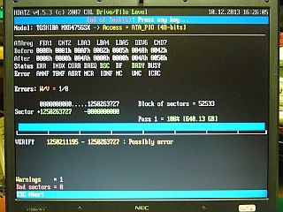 それに、今の処、137GBまでは「Bad sectors」がひとつも見られないので、このツールでも不良を検出出来ないのではないかと、半分失速気味。orz ...更に、PC本体を変えて、追試してみようと思っている。