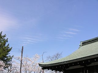 奈良・大和郡山城址へ桜の花見に出掛けた時、良い被写体は無いかと空を見上げたら、鮮明な「地震雲」が見えた。(4/2 午前9時半頃 左写真&<クリック>)