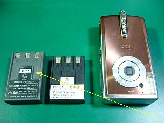 おまけに、(狙って買って来たつもりの)バッテリも、サイズ違いでIXY L1には使えず。(左写真の左端)