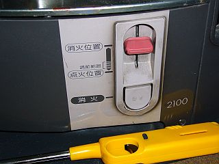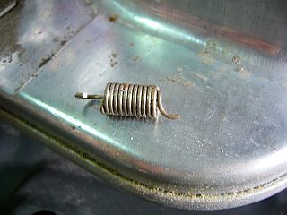「火力設定レバー」がちゃんと戻らなくなった原因は、バネの片側が折れたせいだと分かった。(左写真)