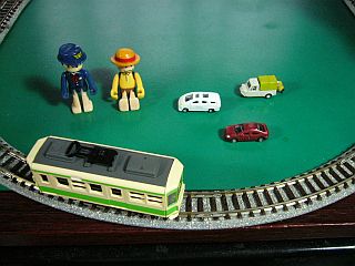 Bトレイン・ショーティ市電3個を買い(\1,573送料込み)、その一つにKATO 動力ユニット11-104(\1,296税込み)を組み込んで走らせている。(図1)