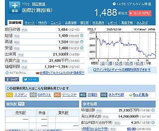 その中で、そろそろ上がりそうなこの「国際計測器(7722)」を、\1,508で200株買った。