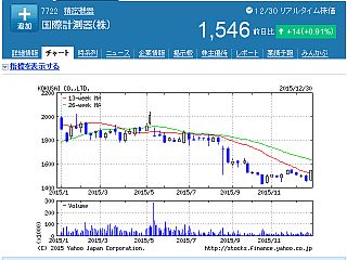 とはいっても、この「国際計測器(7722)」(Yahoo!ファイナンスのデータ)を買った時、一年間のチャート(図1)では底値近くに見えたのだが、これは、必ずしも底値だとは言えなかったかもしれない。