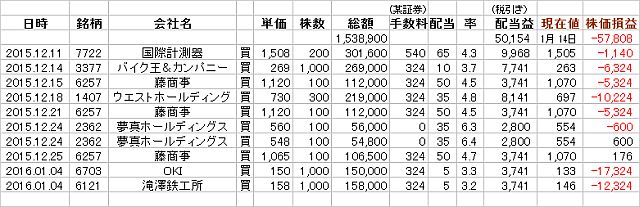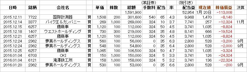 ところで、年末・年始に一通り買い込んだのだが、一気に全銘柄を買ってしまわずに、もっとゆっくりと買い足して|買い下がっていれば、「安値」で買えたんだが!