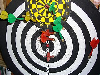 確か、昔の「ダーツの的」はコルク製だったような気がするが、オモチャなどには、そんな高価な材料は使わない/使えないのかもしれない。