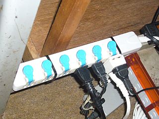 それと同時に、「多口コンセント」を場所替えして取り付け直していたら、手持ちの「結束バンド」群が、底を突いてしまった。(図1)