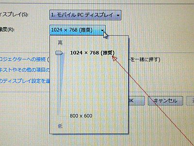 仮に、Win7を組み込んである500GB HDDを載せて走らせてみたら、画面解像度は、XGA止まりだった。(図3)