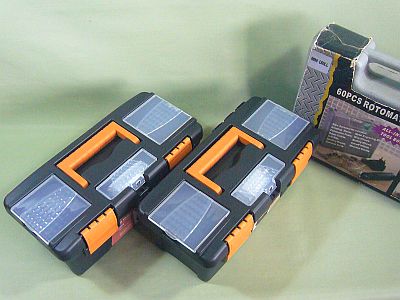 「プラスチック製工具箱」で、通常よりやや小ぶりだが、使い易そうで、“机下の飾り”にも出来そうだ。(図1 1箱¥220税込み)