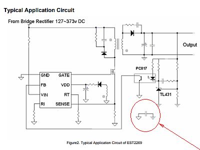 I was looking into the AC-DC converter/switcing regulator circuits and noticed that the most of them always had been connected with a small capacitor (for electrostatic discharging ?) between AC and DC. (Fig.1)