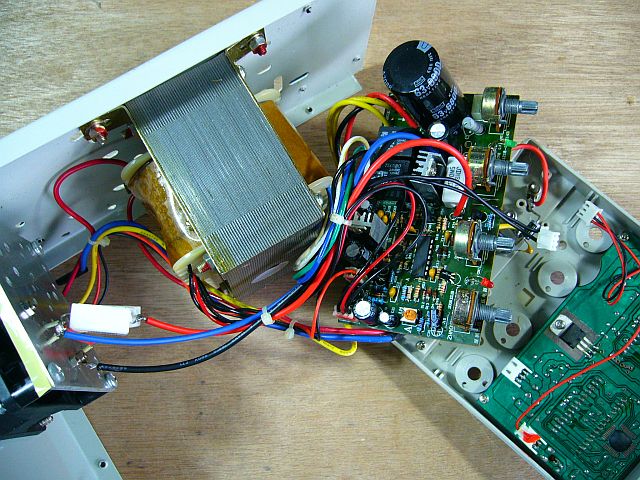(このメーカが、専用で作らせたらしいトランスを使っているのに、販路を予測して中間の110V端子を、取り出していないのは妙だが、もしかしたら米国向けOEM品か?)