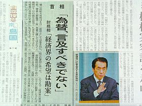 “官僚主導”であった国政を、“政治主導”に引き戻したい新政権だし、そうした“不可侵界”にも一言口を出したくなるのは、当然の思いだろう。 貧乏民としても、非力ながら応援したい処。