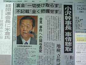 この“土地購入問題”、関係者の話として、(東京地検・特捜部から?)面白いように情報が漏れて来るが、逆に当事者からは、あまり漏れて来ないので、マスコミも苛立っているのは分かるが。(左上の記事など)