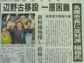 “普天間基地”の移設予定先だった“辺野古”が、また一歩遠退いたようだとの報道。(例:左記事)