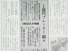 (多分、“貧者のやっかみ”だろうが、)1億円以上の年収には、目を剥きたくなる。