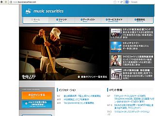 先日、ある報道で、このサイト(ミュージック・セキュリティーズ 左写真は表紙の一部)を知って、早速“会員登録”をして、ささやかな“投資&寄付”をしました。