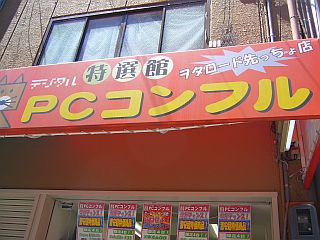 以前、「じゃんぱら」、「PC−NET 2号店」などが入れ替わり立ち代り入っていた場所に、今はこの「PCコンフル」が入っている。(左写真)