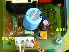 出力部の電解コンは耐圧100Vのものに交換しましたが、他に2個ほど耐圧50V(4.7μF)のものがあるので、いずれ交換も考えないといけませんが。(左写真)
