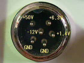 固定電圧(6.3V,1.4V,-12V)、それと可変電圧(5〜50V)出力は、前パネルに元から付いていた6Pメタル・コンセント(メタコン)から、取り出すようにしました。