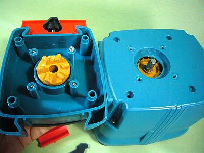 分解してみたら、いきなり黒・白の粉がバラバラ落ちて来て、モータ軸にはべったりと熔けたゴム状のものがへばりついていた。