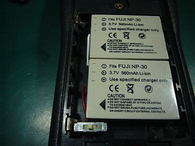 これに替えて、デジカメ用小型「Li-ionバッテリ」を2個使い(7.4V)で“電源”にした。