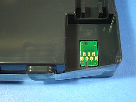 確かに、プリンタに入っていたカートリッジには、ヘンなチップが付いていますね。(左写真)