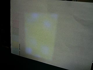 取り敢えず、LEDランプを使い、周囲を真っ暗にしておいて、電源を投入すると、一瞬(内蔵データ信号による)「EPSON xxxx」という文字が投影される。