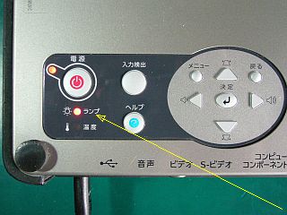 「電源LED」が緑から赤に変わって、「ランプLED」は赤の点滅状態になっている。
